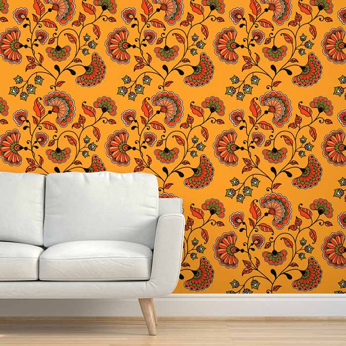 Boho Indian flowers deep yellow orange whimsical vintage Removable Wallpaper