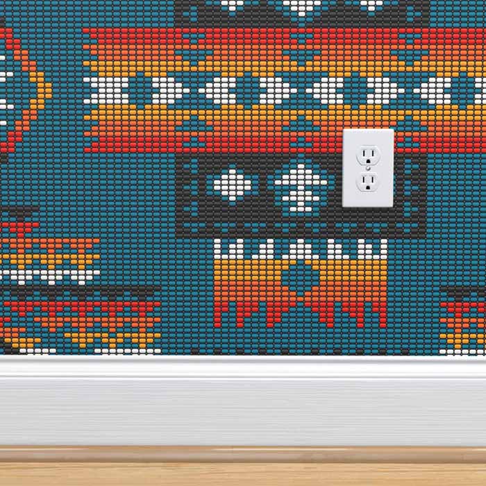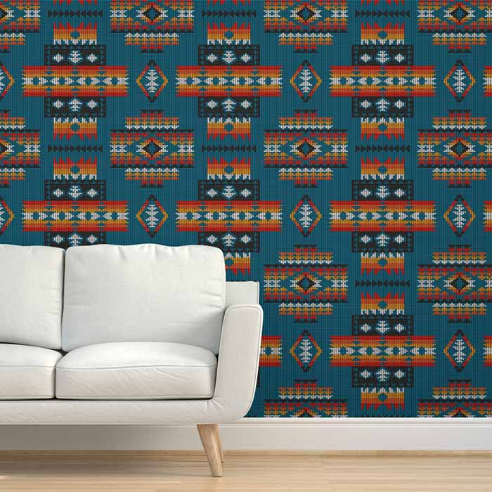Boho Native American beads Aztec kilim blue large Peel & Stick Wallpaper
