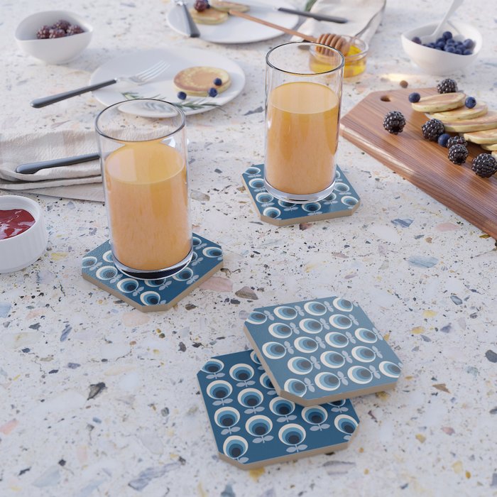 Coasters Classic Blue 70s retro flowers pattern