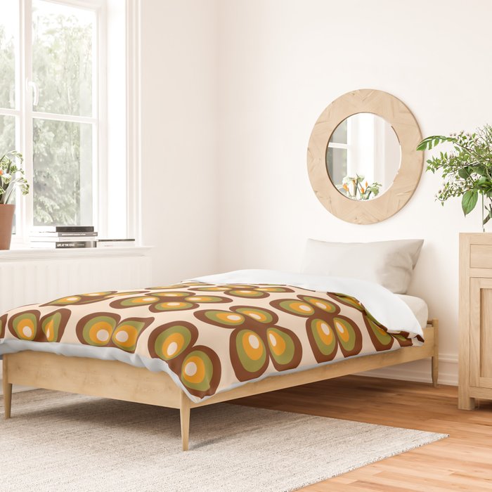 Cotton Duvet Cover Retro 70s funky circle flowers brown, orange