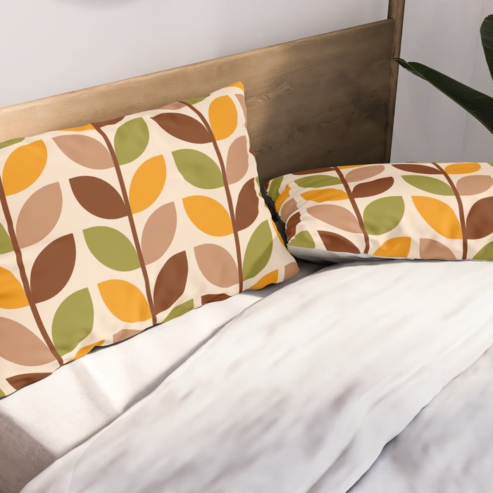 Cotton Pillow Shams Retro 70s geometric leaves branches brown orange
