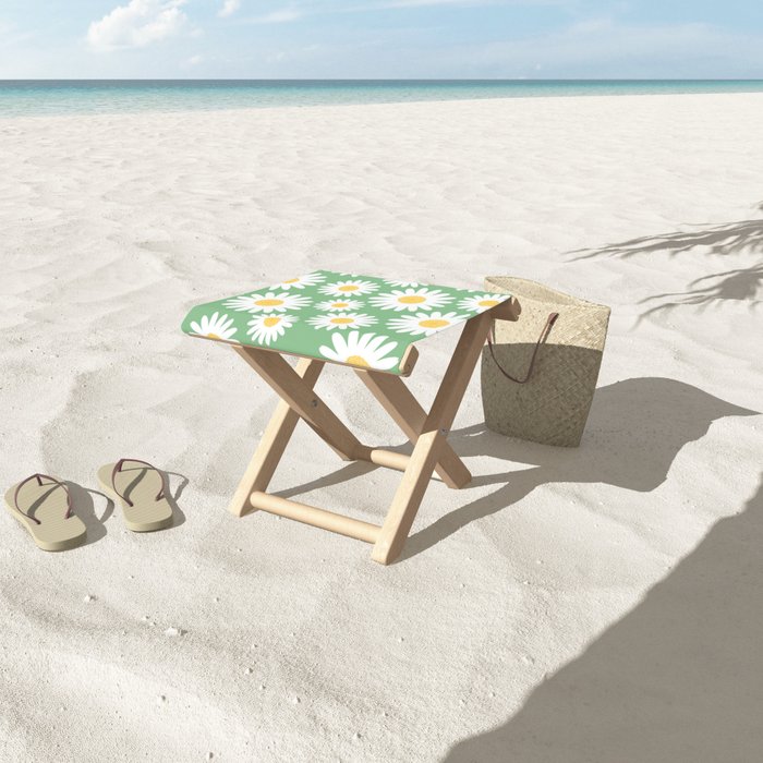 Jumbo white daisies on green beach Folding Stool