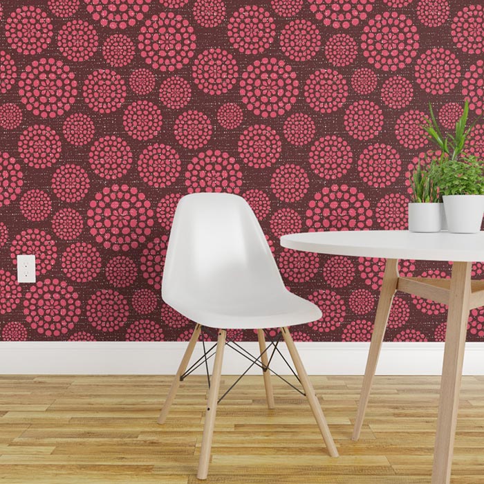 Maroon abstract dots circles textured pattern Prepasted Smooth Wallpaper