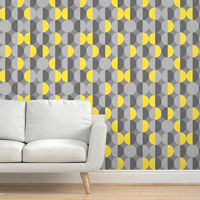 Mid-century modern retro circles yellow gray Removable Wallpaper