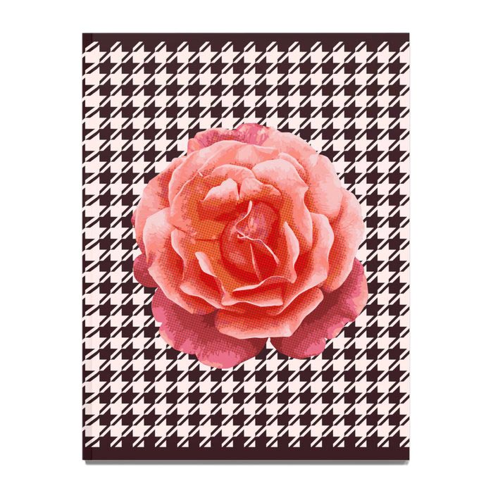 Modern rose on classic black & white houndstooth Notebook