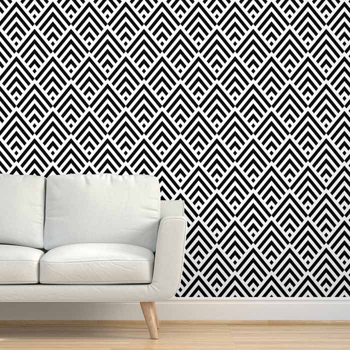 New Art Deco diamonds stripes White Black Non-pasted Wallpaper