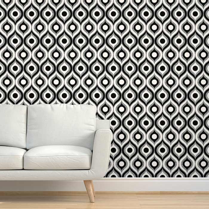Ogee ovals retro mid-century texture gray black Non-pasted Wallpaper
