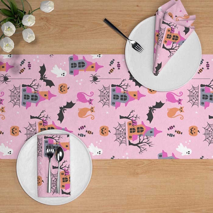 Pink Halloween pastel spooky Table Runner