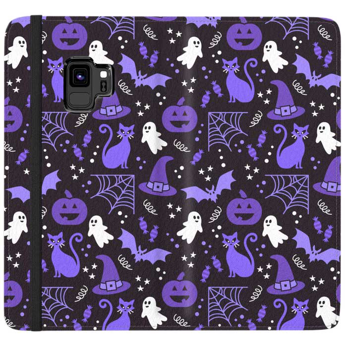 Samsung Galaxy S9 Wallet Case Halloween party illustrations purple, black