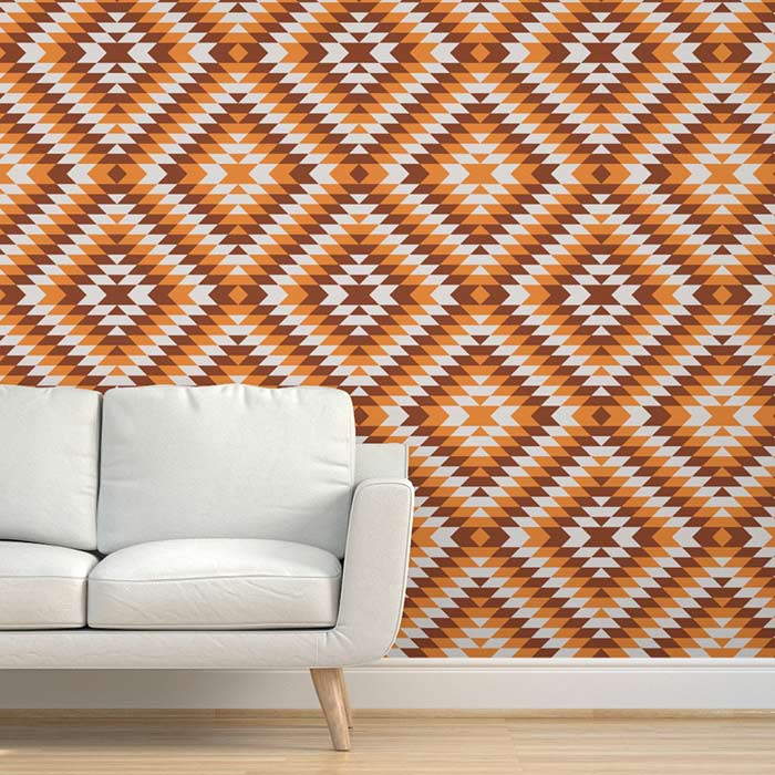 Vintage Aztec diamonds classic kilim brown orange Classic Wallpaper
