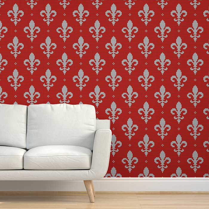 Vintage Fleur de Lis true red white beads Removable Wallpaper