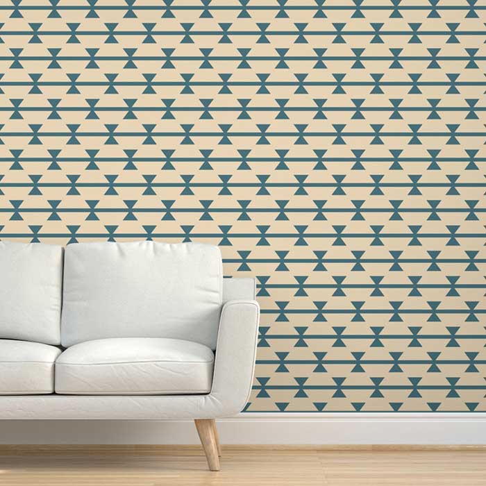 Vintage small Aztec triangle stripes cream blue Removable Wallpaper