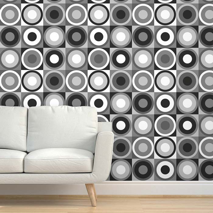 Wallpaper pre-pasted Retro circles black & white grey